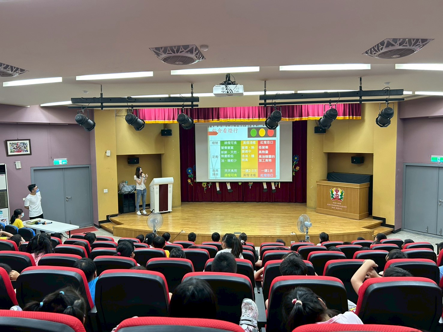 聯引營養師宣導食物紅綠燈,綠燈食物可正常吃,黃燈食物少吃,紅燈食物儘量不要吃,建立學生正確飲食觀念及做法,培養良好飲食習慣及用餐禮儀。